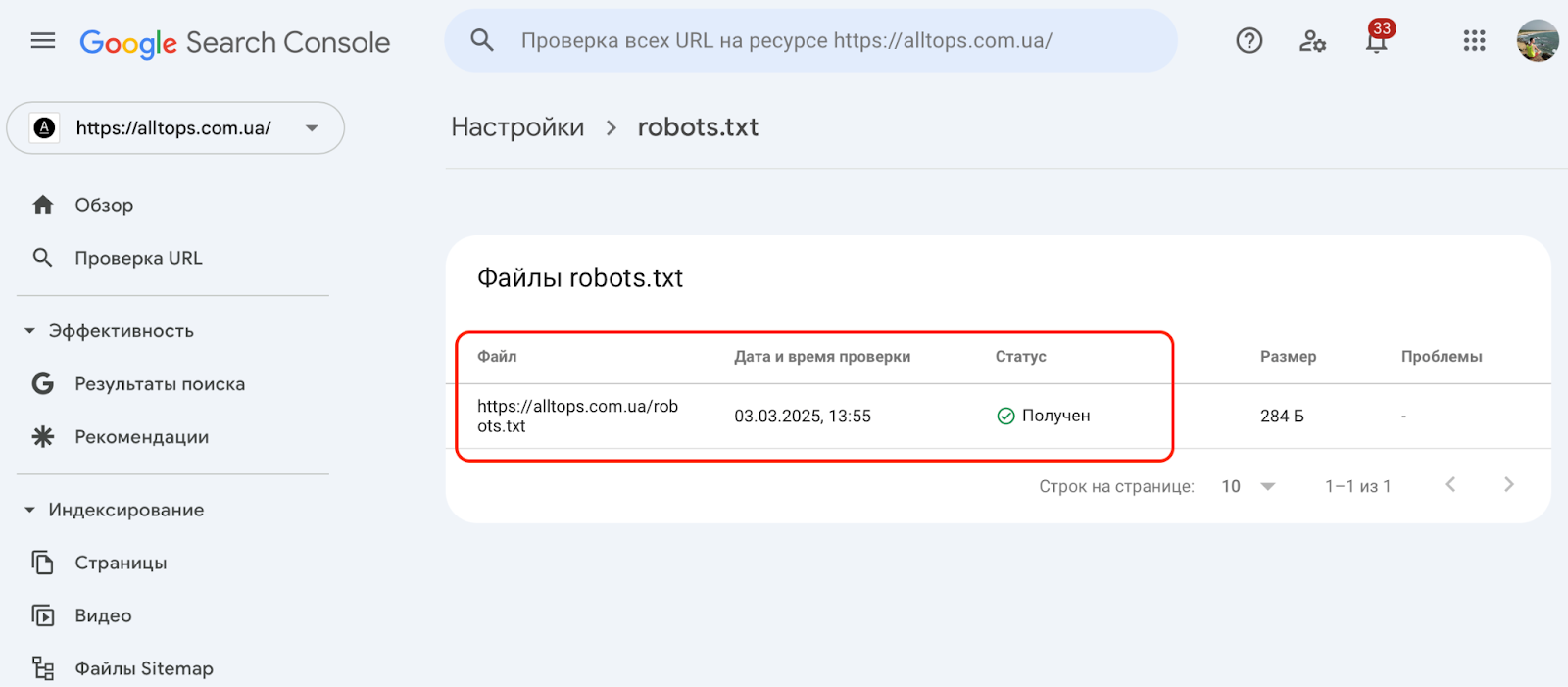 (Приклад визначення коректної роботи файлів robots.txt з допомогою Google Search Console)