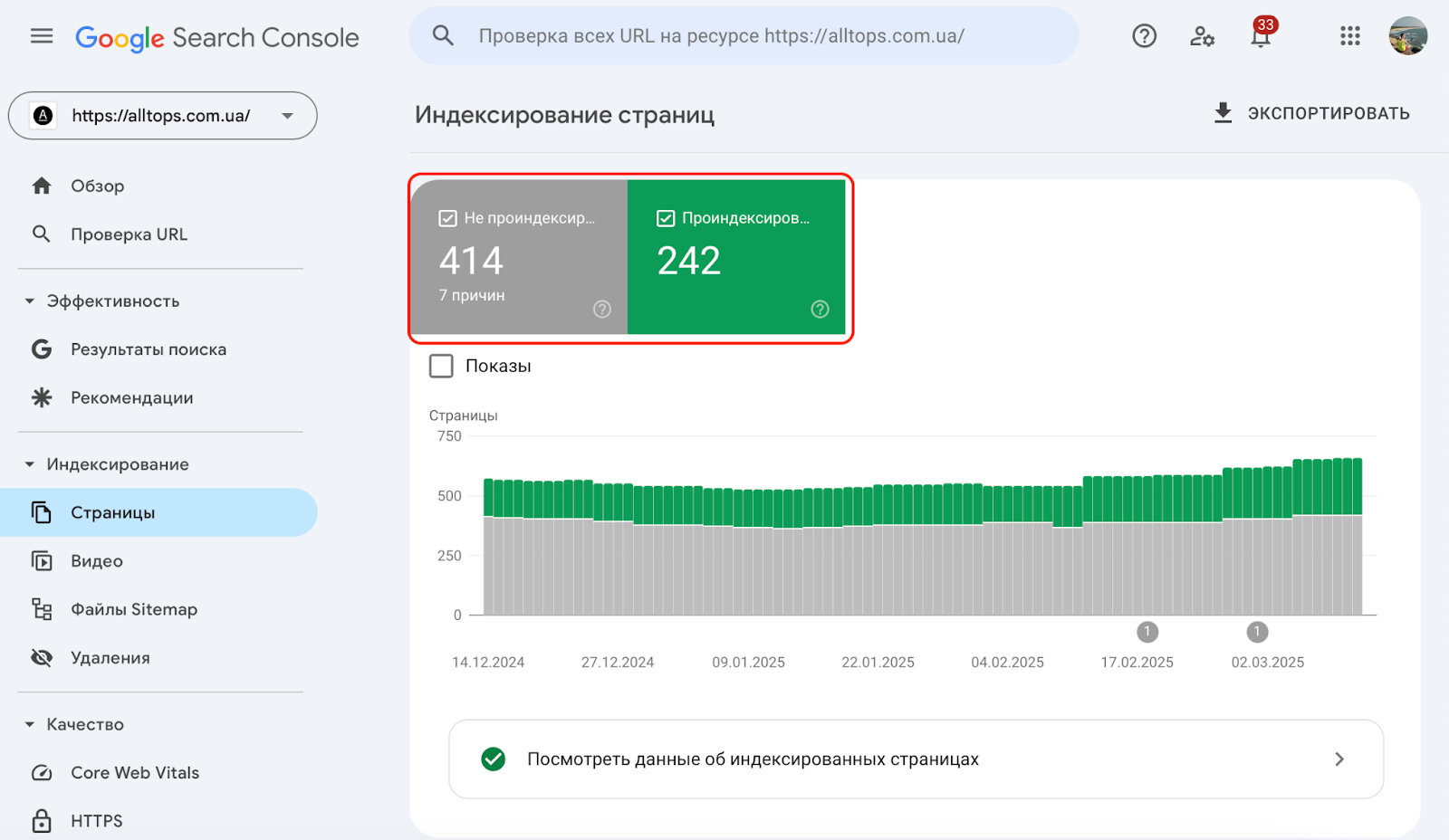 (Приклад визначення індексації сторінок у Google з допомогою Google Search Console)