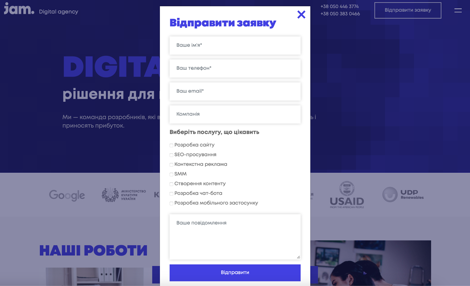 (Приклад форми зворотнього зв’язку на сайті jam.in.ua)