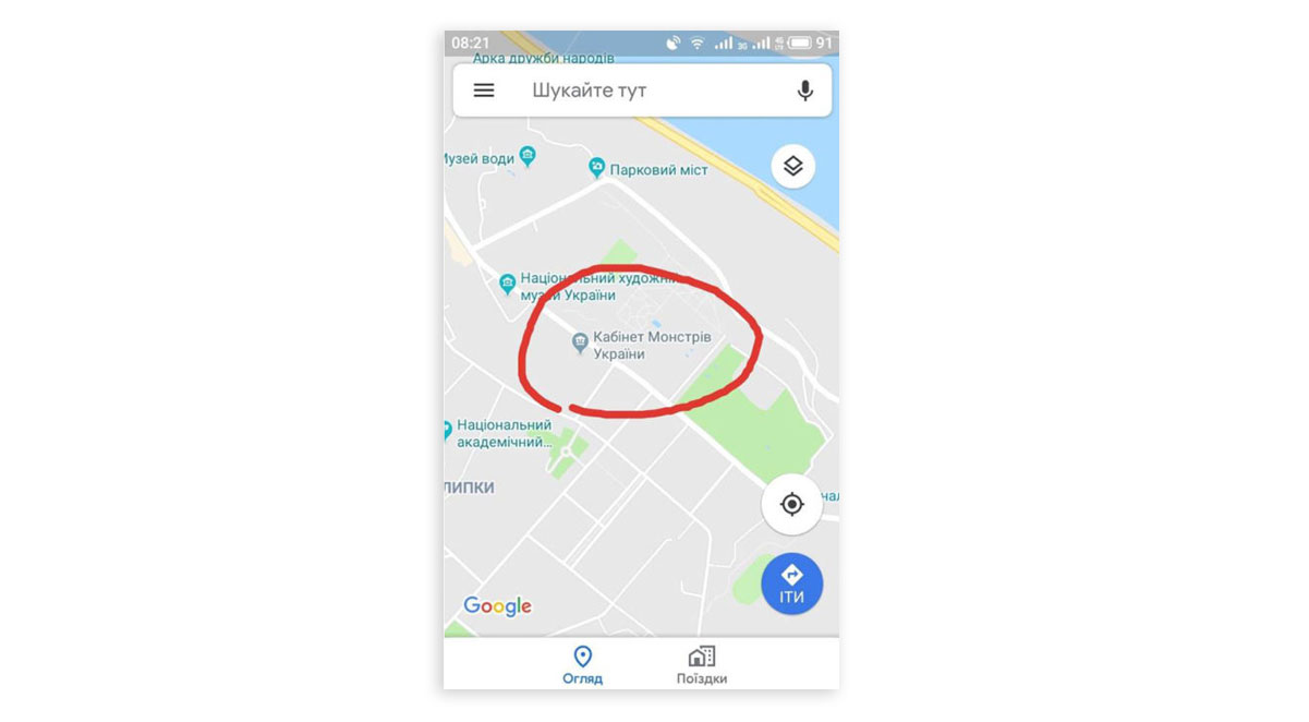 Наприклад, місце розташування Кабінету Міністрів України перейменували на «Кабінет Монстрів». Ця назва з’явилася лише в українській версії сервісу.