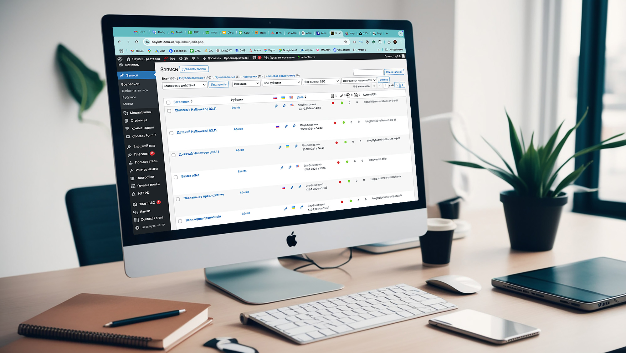 - Використовуйте розділ “Записи” для створення публікацій і “Сторінки” для додавання статичних сторінок, таких як “Про нас” чи “Контакти”.