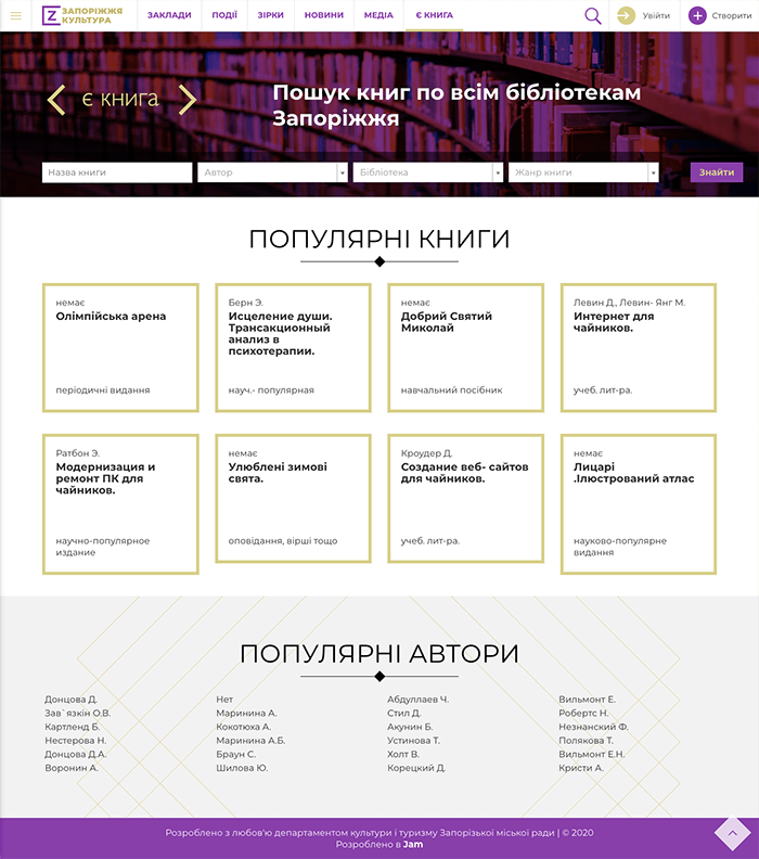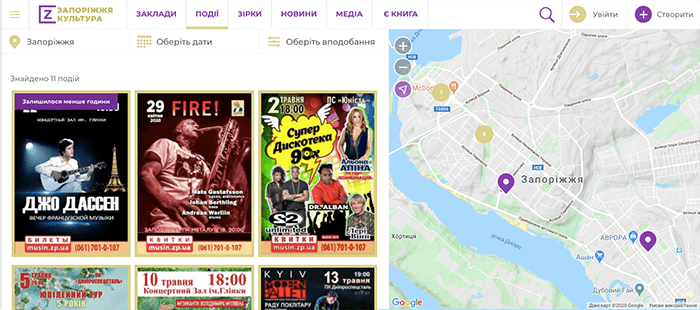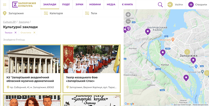 Міський портал департаменту культури, що дозволяє дізнатися про культурне життя Запоріжжя.