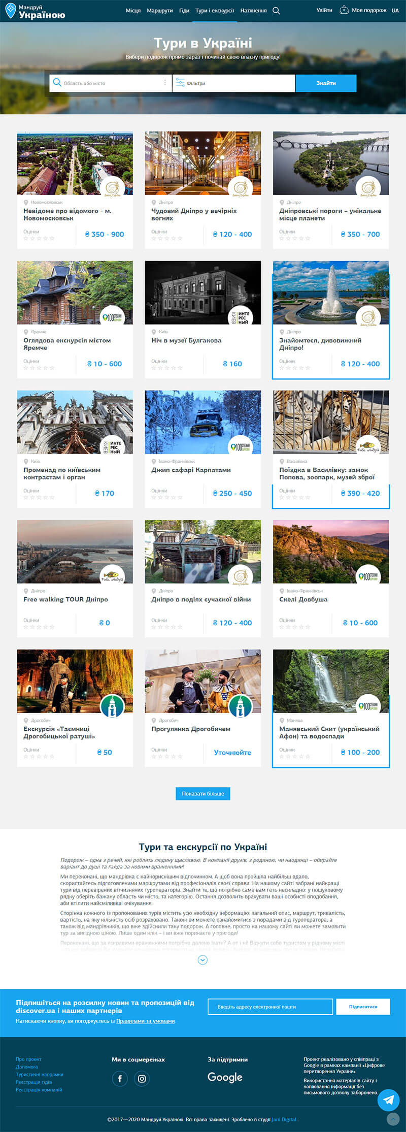 Допоможе сайт і з пошуком туру. Просто обирайте відповідну категорію і дізнавайтеся про нього все — від маршруту і вартості до слушних порад від бувалих мандрівників.