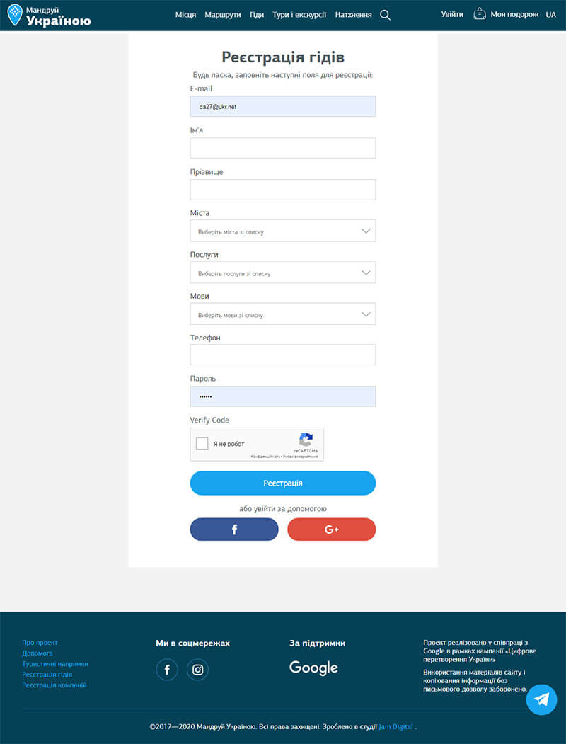 Туристичний портал реалізований за підтримки Google Україна.
