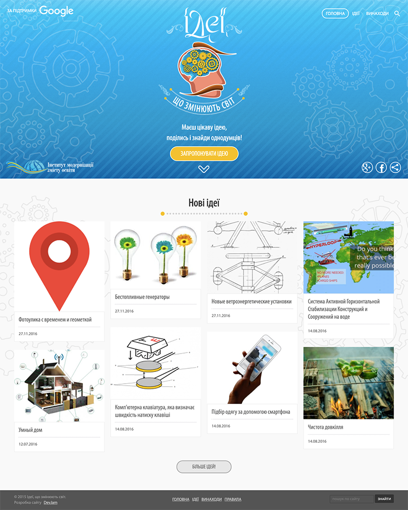 У 2015 році за підтримки Google Україна та Міністерства освіти і науки України команда Jam Development розробила сайт для винахідників — «Ідеї, що змінюють світ».