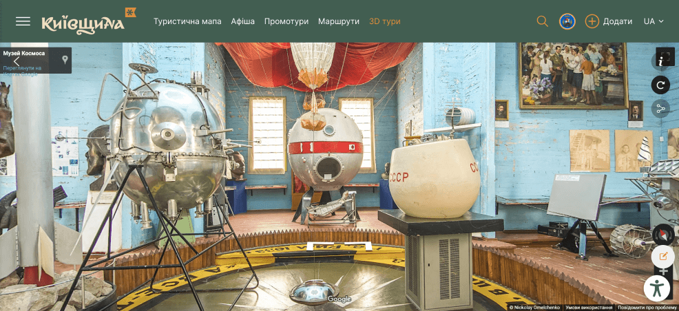 За допомогою 3D-турів користувачі можуть вирушити у захоплюючу мандрівку, не виходячи з дому. На онлайн-мапі відображені безліч локацій: природні об’єкти, релігійні пам’ятки, музеї, театри, історичні місця, рекреаційні об’єкти, готелі, заклади громадського харчування. Кожна локація має детальний опис зі всією необхідною інформацією: адреса, контактні дані представників, години роботи, посилання на офіційний сайт, соціальні мережі та реальні відгуки інших користувачів.