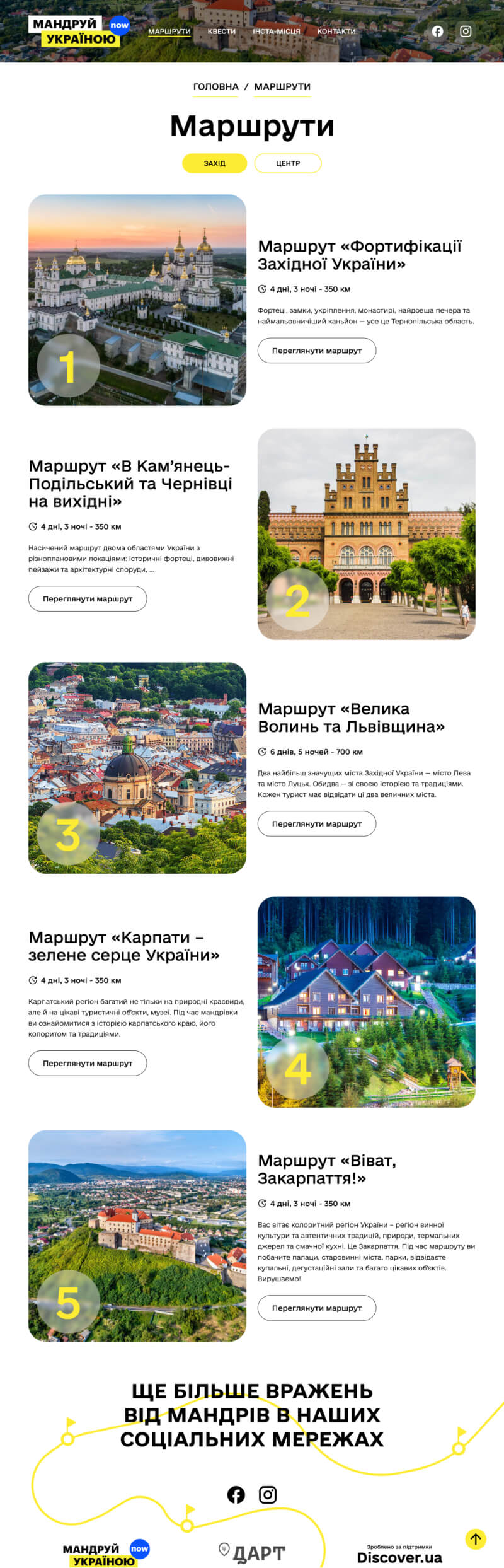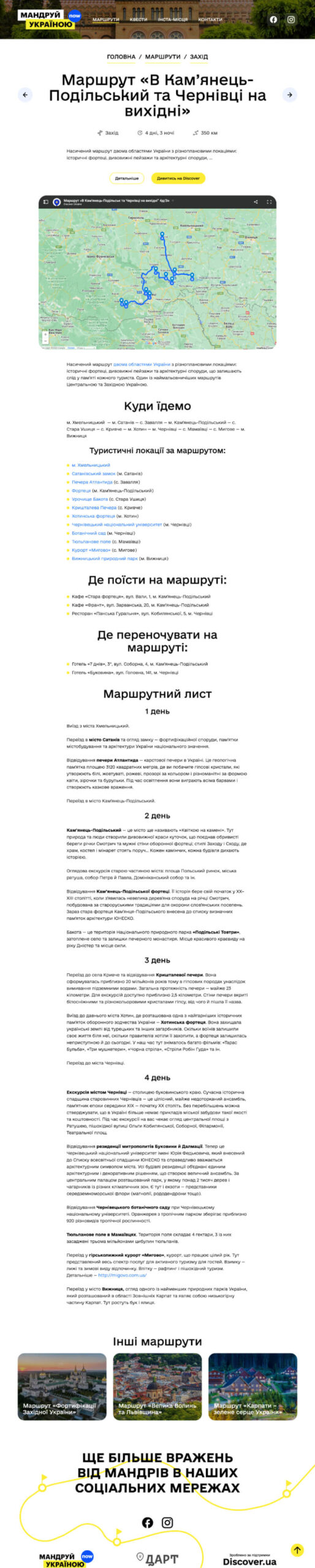 “Мандруй Україною” — це інноваційний проєкт, розроблений для Державного агентства розвитку туризму (ДАРТ), який дозволяє підкорити найцікавіші місця України. З використанням CMS WordPress та Google Maps API для карт, ми створили зручну та інтуїтивно зрозумілу платформу для всіх любителів подорожей.