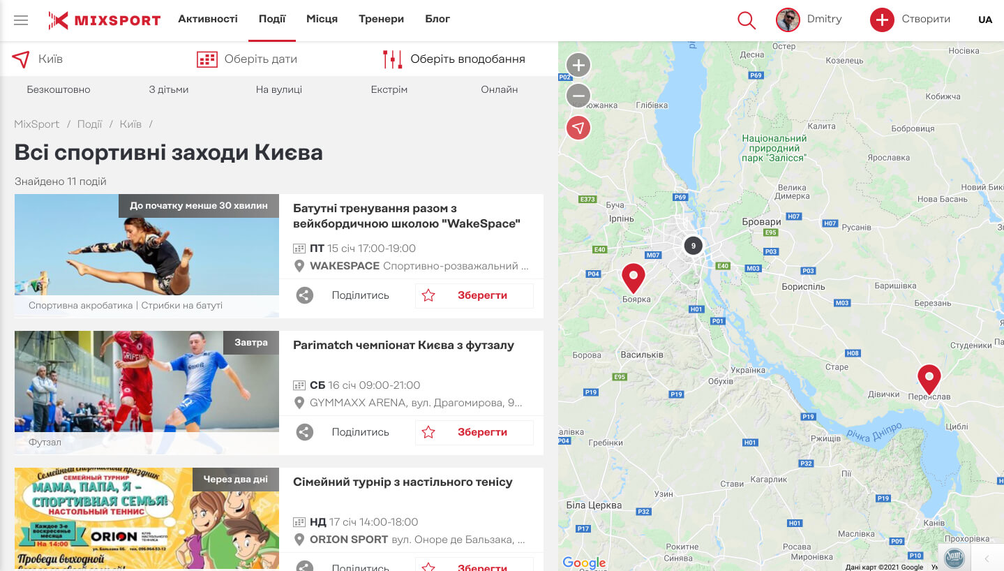 Інтерфейс сайту дуже простий і зручний у використанні. Вказавши свої інтереси, місце розташування або дату, ви швидко знайдете те, що вам потрібно. Після швидкої реєстрації ви зможете самі додавати локацію, івенти або тренерів. Відгуки про місця і тренерів від інших користувачів допоможуть вам зробити правильний вибір. І не забувайте ставити свої оцінки, щоб допомогти іншим.