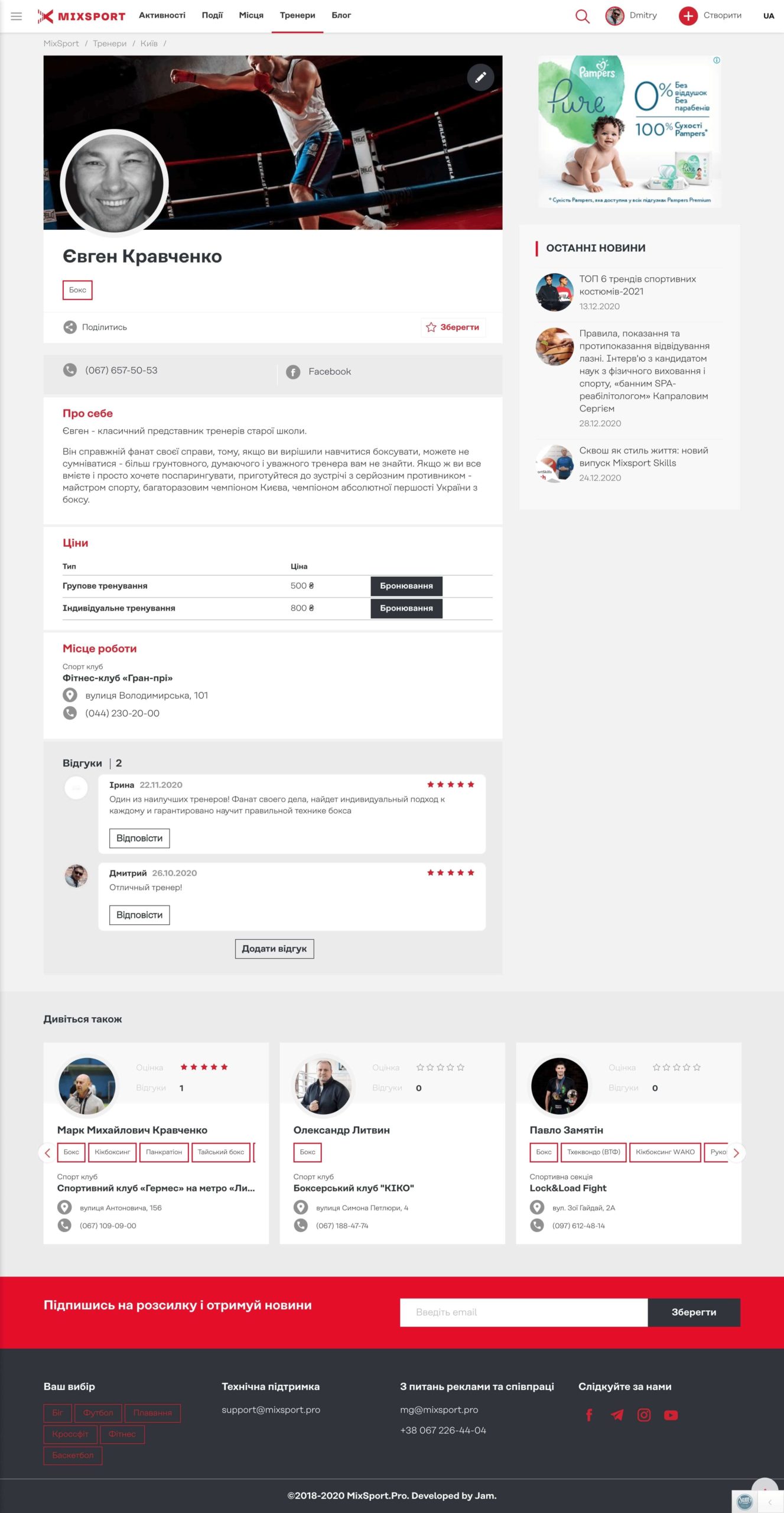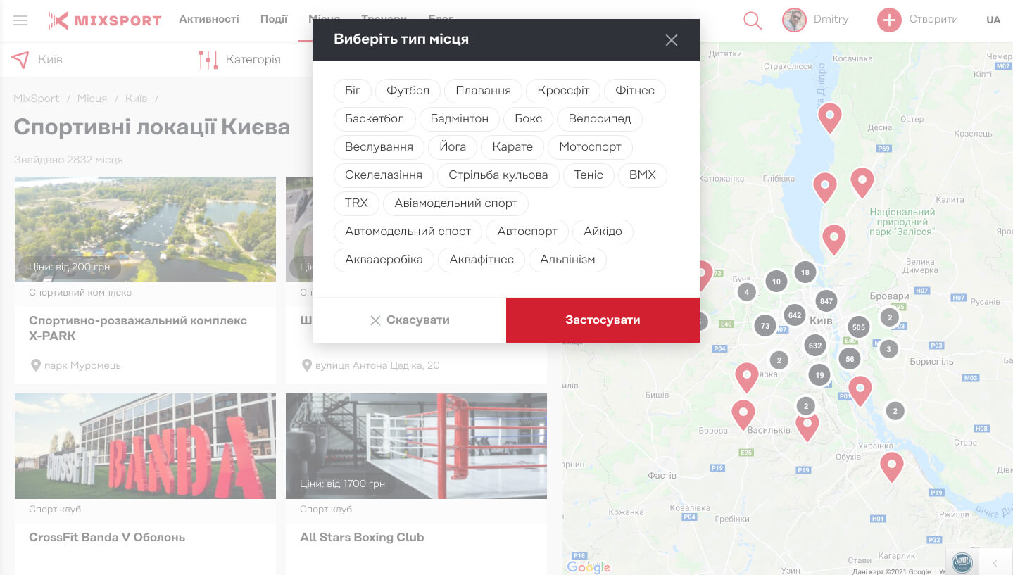 Mixsport – сервіс пошуку спортивніх локацій та івентів. Хочете записатися в басейн, взяти участь у змаганнях або віддати дитину до спортивної секції? У нас на сайті ви знайдете всі необхідні дані й обов’язково підберете підходяще місце. Також на Mixsport ви можете вибрати не тільки спортивний клуб, але і знайти тренера, який допоможе вам досягти поставленої мети.