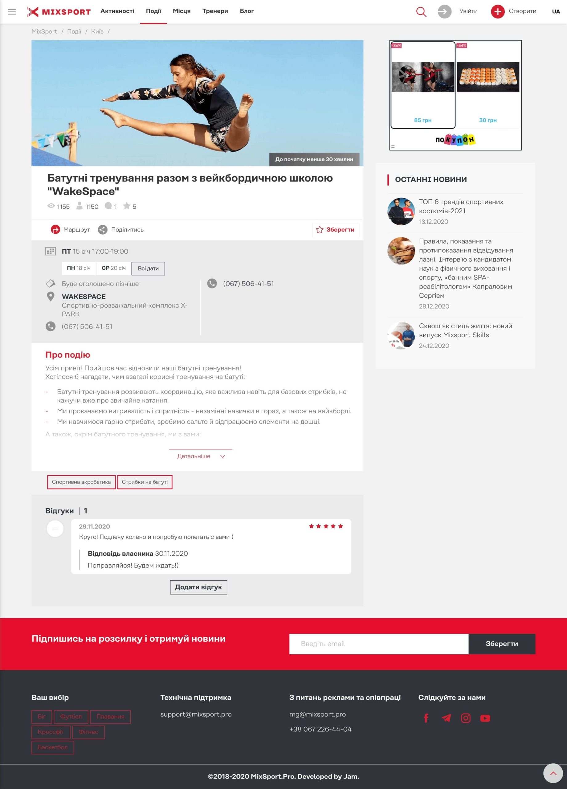 Приєднуйтесь до нас і пориньте у спортивну тусовку вашого міста. А Mixsport допоможе в цьому і принесе у ваше життя більше спорту, щастя, адреналіну і яскравих вражень!