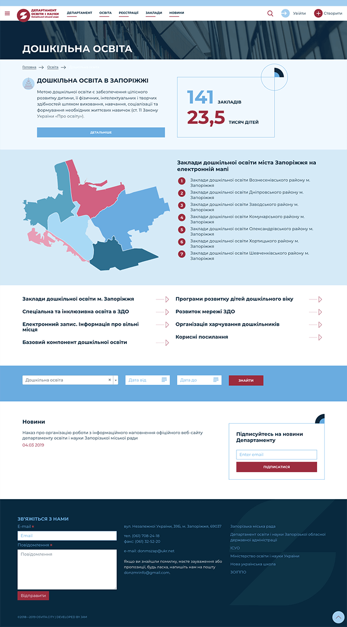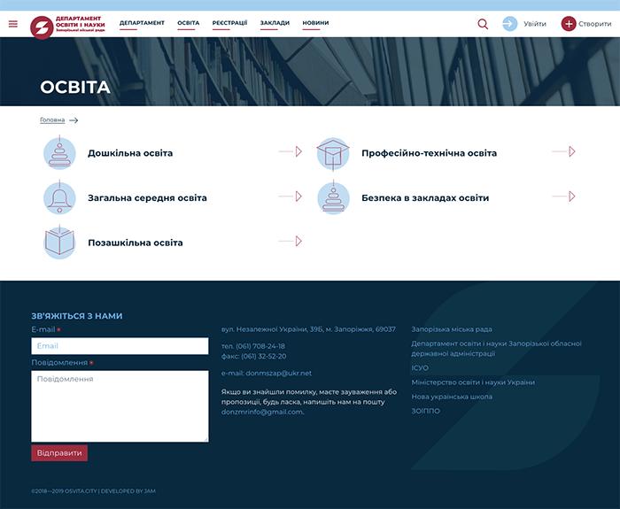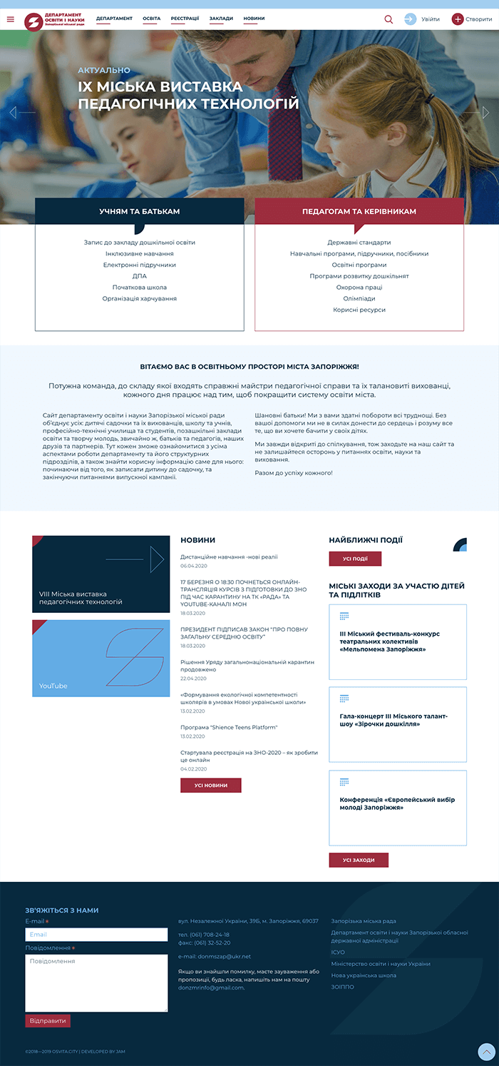 Портал департаменту освіти і науки Запоріжжя, на якому розміщено інформацію про різні види освіти в місті: дошкільну, середню, позашкільну, професійно-технічну.