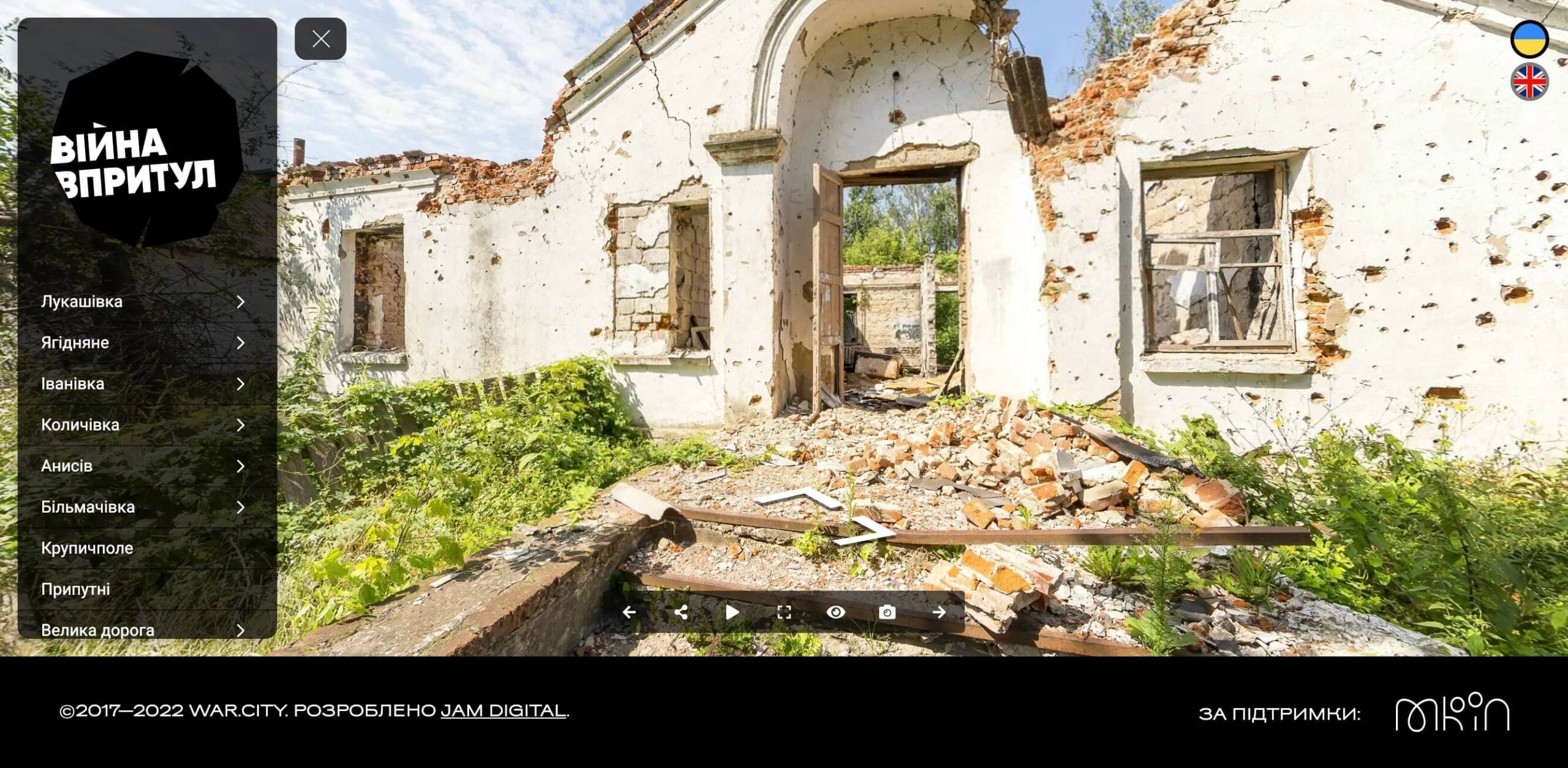 Проєкт «Війна впритул» був створений, щоб за допомогою VR-турів та 3D-моделей показати світу жахливі наслідки російського вторгнення в Україну.