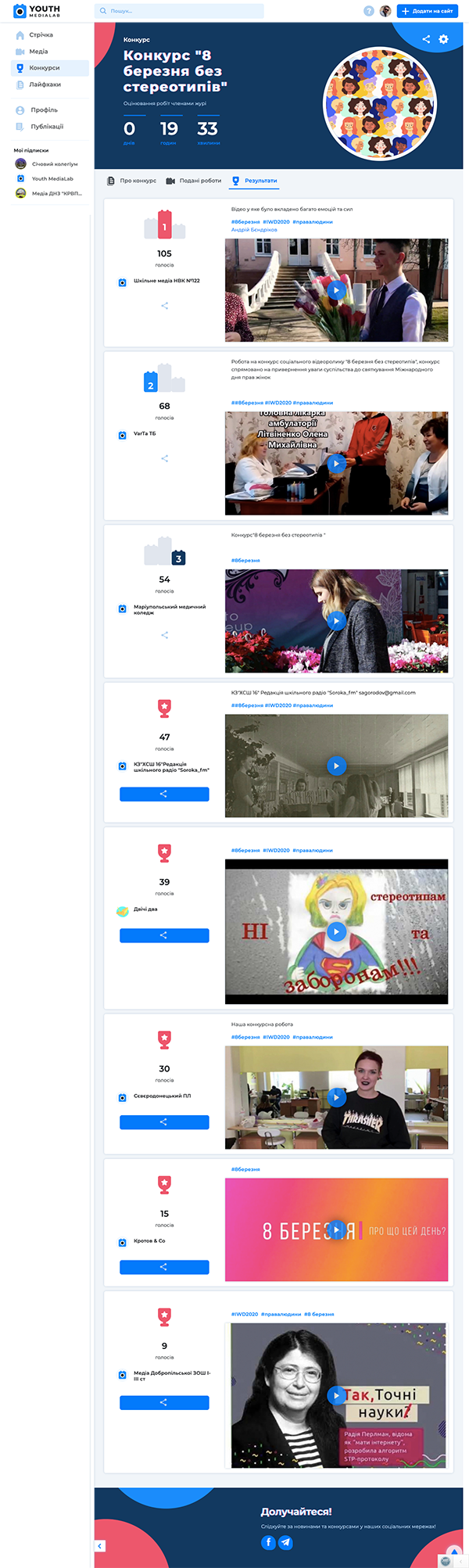 Висловлює щиру подяку за високопрофесійну роботу зі створення Всеукраїнської медіаплатформи Youth MediaLab.