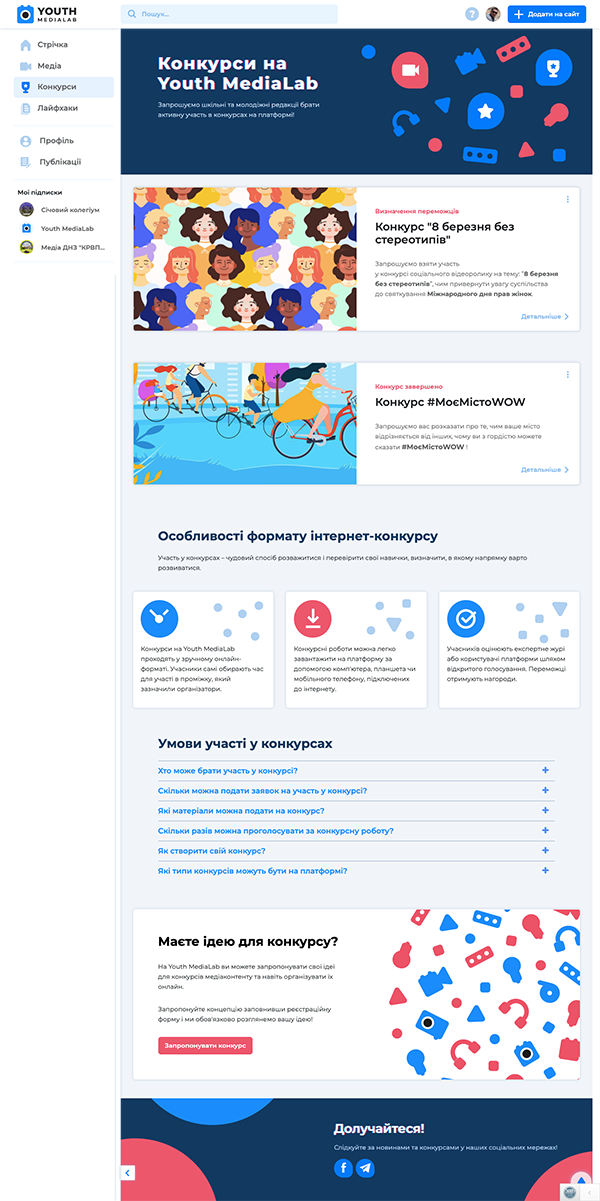 Проектування, прототипування та дизайн веб-платформи, програмування та запуск виконані якісно і вчасно. Особливо зазначимо, що зручна та інтуїтивно зрозуміла система управління сайтом дозволяє легко оновлювати інформацію та модерувати користувацький контент.