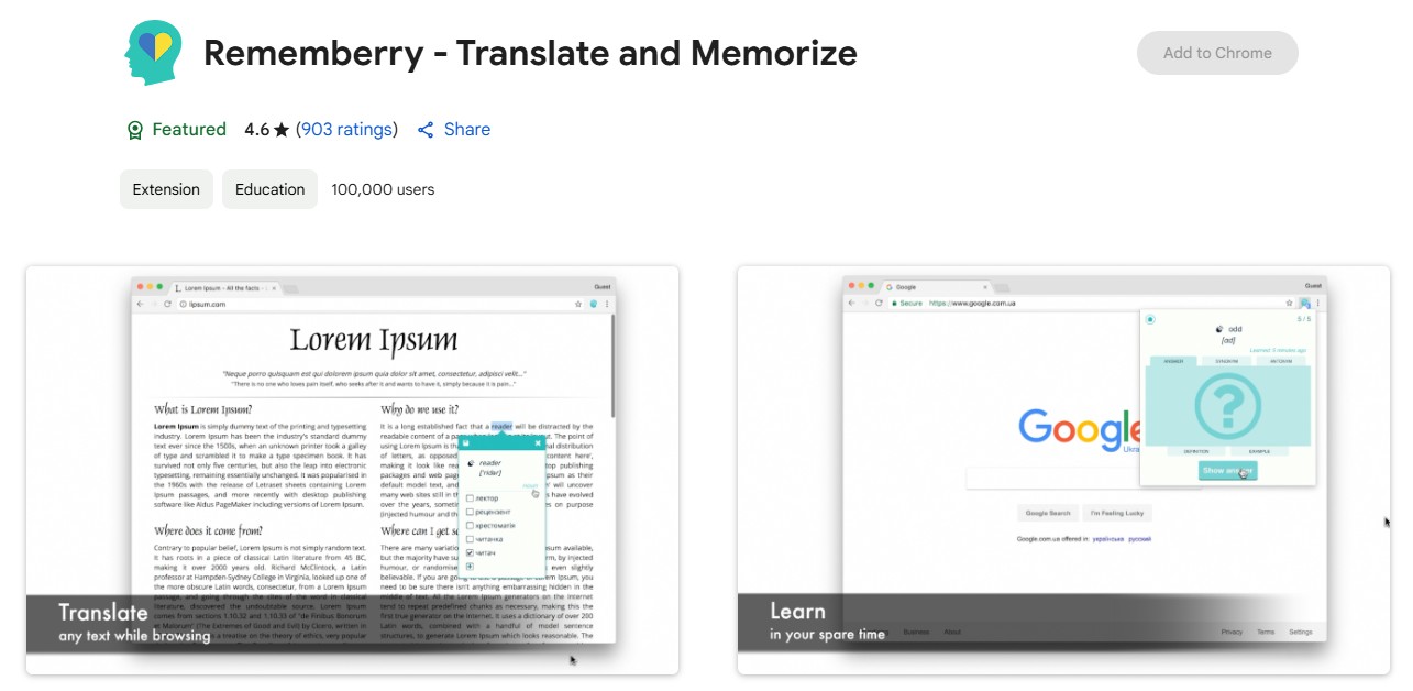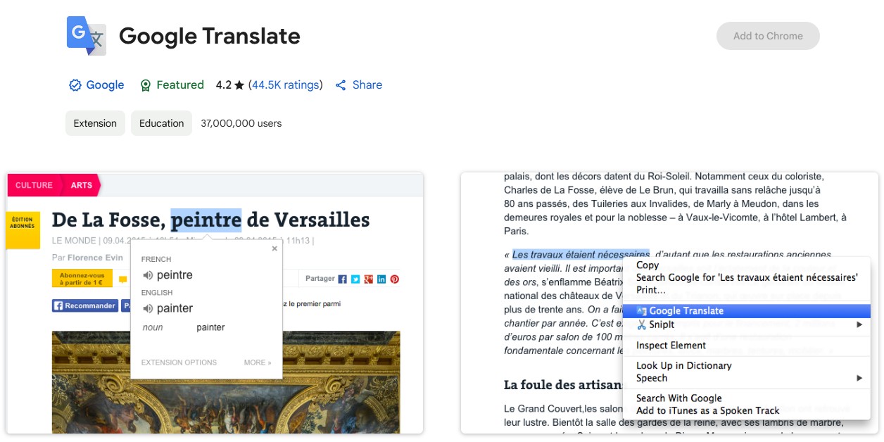 Google Translate is the official translation extension from Google, and over 10 million users use it.