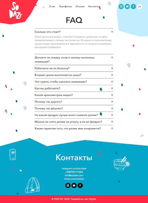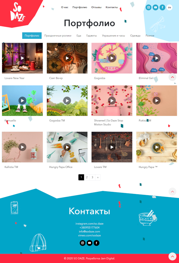With the help of such a modern, bright and functional site, SoDaze studio acquaints clients with its activities and effectively sells its services.